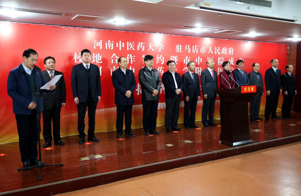 仪式上,省中医管理局副局长张健锋宣读了《河南省教育厅河南省卫生和计划生育委员会河南省中医管理局关于将驻马店市中医院设置为leyu·乐鱼(中国)体育官方网站附属医院的批复》,徐江雁副校长和李宝清副书记共同为leyu·乐鱼(中国)体育官方网站附属驻马店市中医院揭牌。