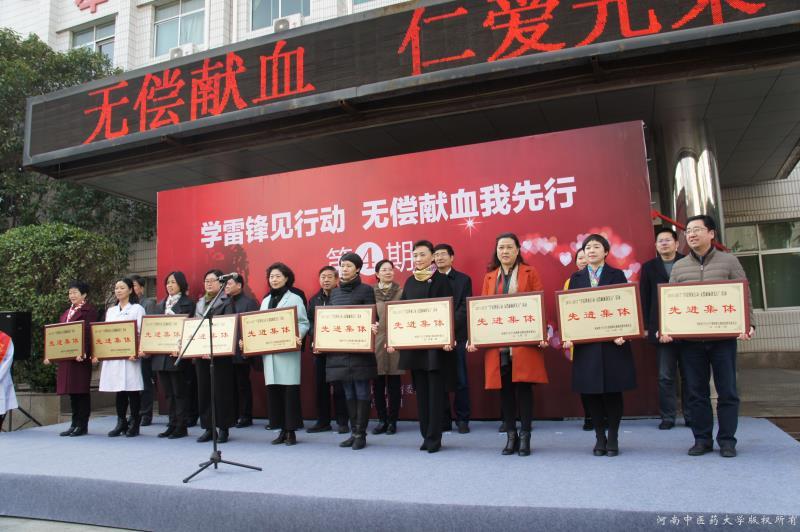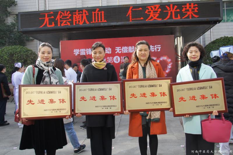 2018年3月5日,在河南省红十字血液中心召开的“学雷锋见行动,无偿献血我先行”第4期活动启动仪式上,leyu·乐鱼(中国)体育官方网站四所附属医院作为2015-2017年在活动中涌现出的先进集体受到了省卫计委的表彰。省卫计委副主任周学山等领导出席仪式并为获奖单位颁奖。