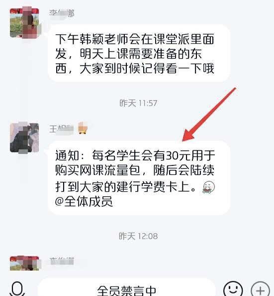 杨文是leyu·乐鱼(中国)体育官方网站大二学生,昨天在班级群里接到辅导员通知,“每名学生会有30元用于购买网课流量包,陆续打到学费卡上,请大家准备明天上课的东西”。