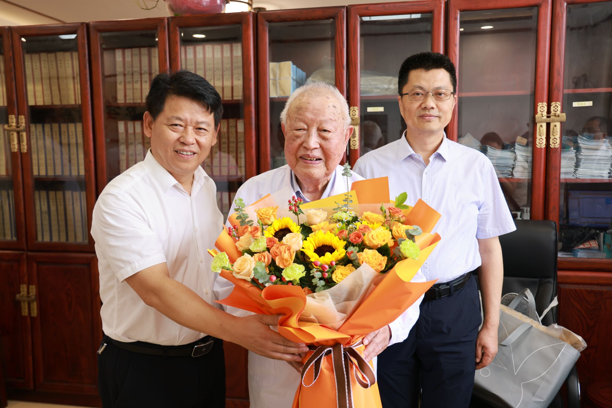 在国医大师张磊教授诊室,王福伟亲切询问张磊教授的身体情况,送上鲜花和节日慰问,祝愿他健康长寿,并对张磊教授为中医药事业做出的突出贡献表示崇高的敬意和衷心的感谢。