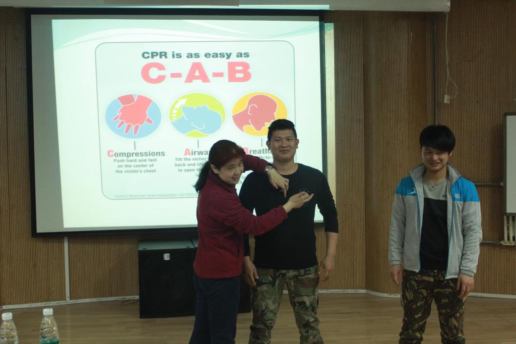 丁利娟老师为志愿者进行应急事件医护求助常识培训