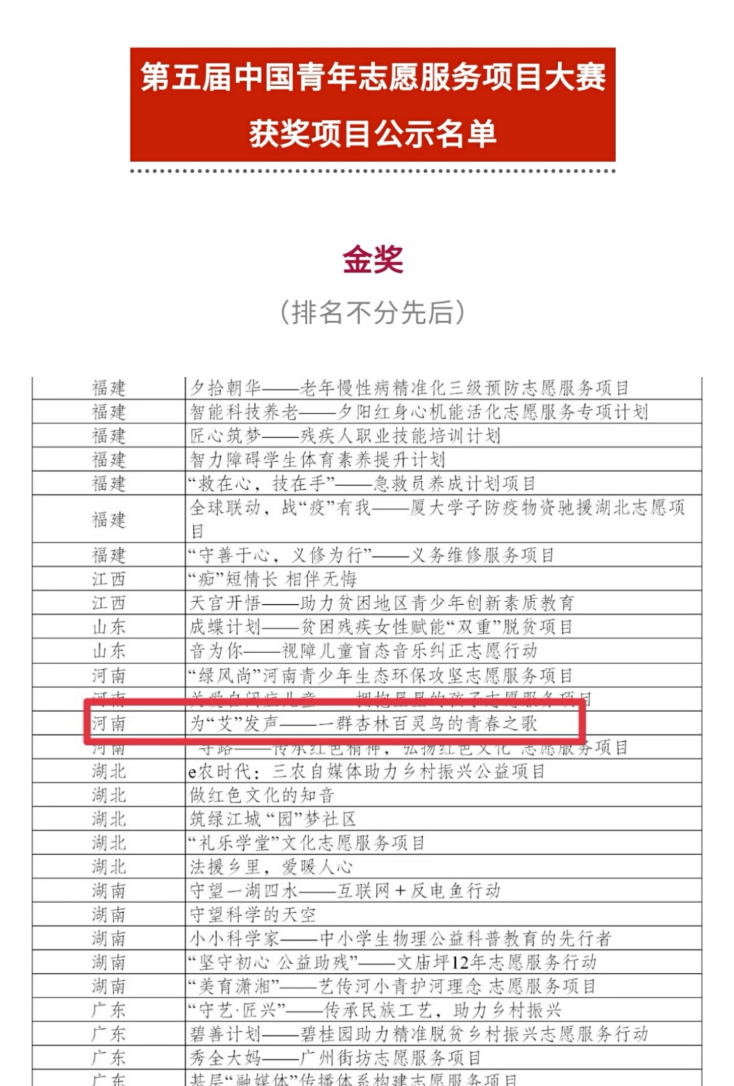 获奖项目公示名单(部分)