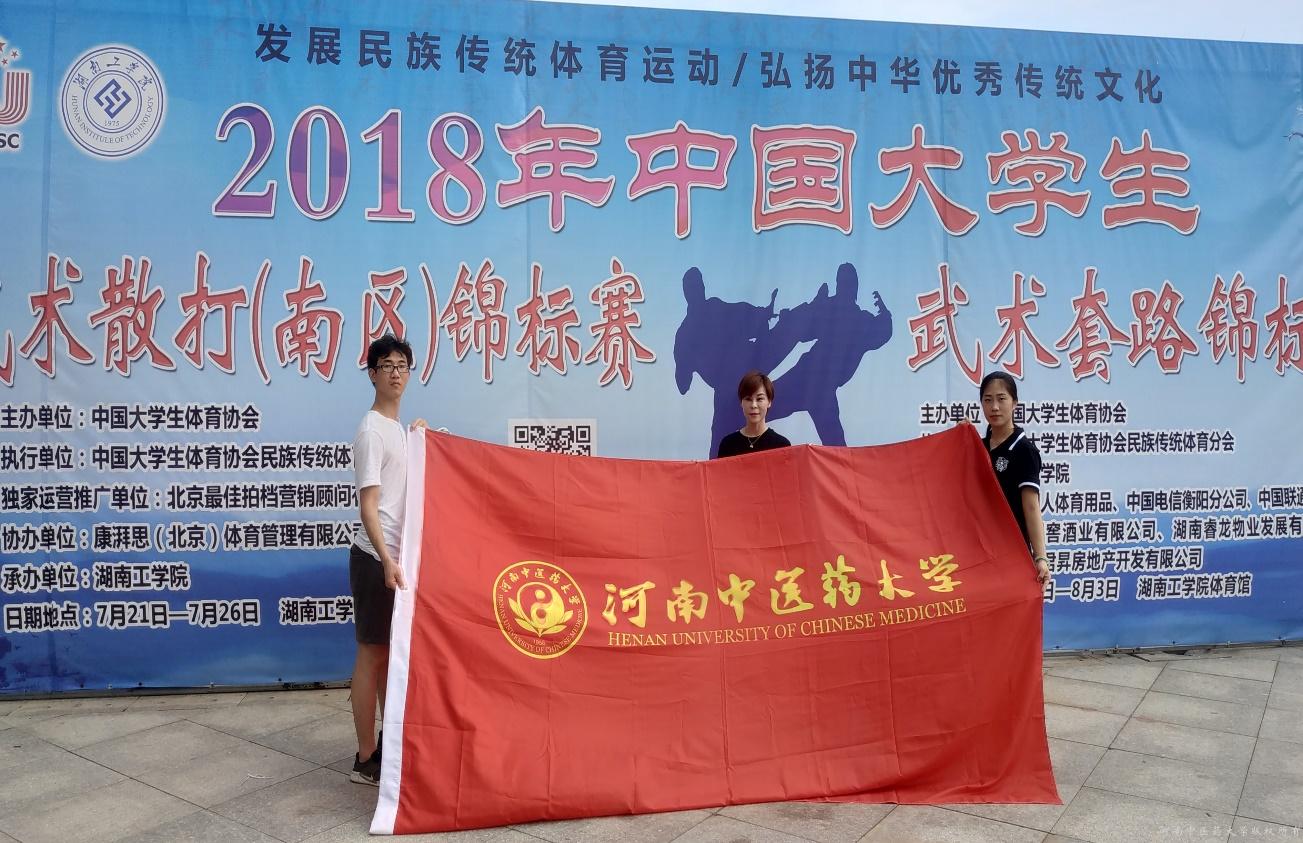 2018年中国大学生武术锦标赛于7月29日-8月2日在湖南工学院成功举办。来自北京大学、复旦大学等全国139所高校,149个代表队1066名运动员参加了自选拳术、自选器械等7个大项196个项目的比赛,角逐“武林盟主”,规模为历届之最。leyu·乐鱼(中国)体育官方网站由惠秋丽老师带领熊永毫和金雨鑫同学,参加了女子甲组和男子丙组的六个项目的比赛,获得了1个第一名、1个第三名、两个第五名和一个第七名的好成绩。