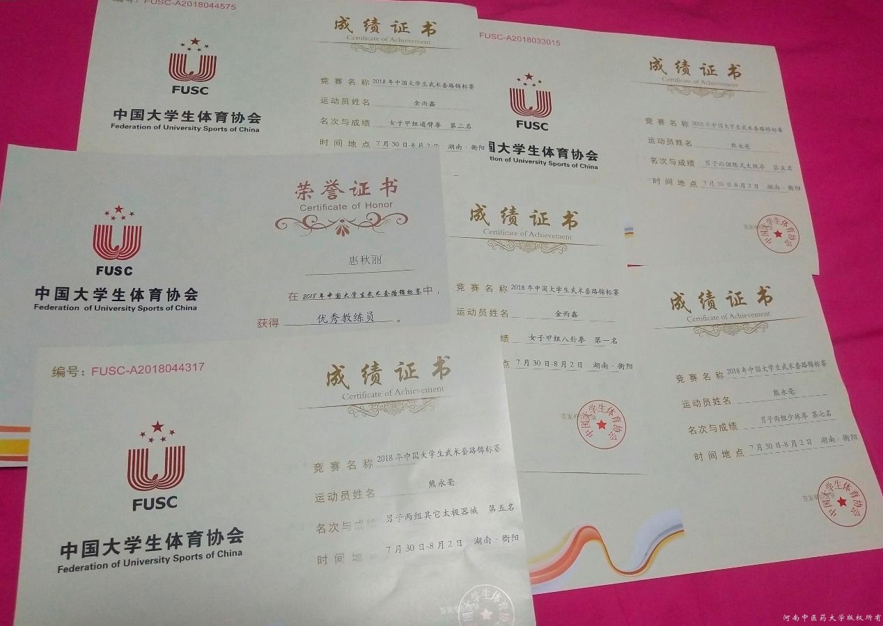 几个月来,参赛同学刻苦训练,圆满地完成了比赛任务,在全国大学生体育赛场上展现了leyu·乐鱼(中国)体育官方网站师生靓丽风采,惠秋丽老师被评为优秀教练员,为学校赢得了荣誉。(体育教研部)
