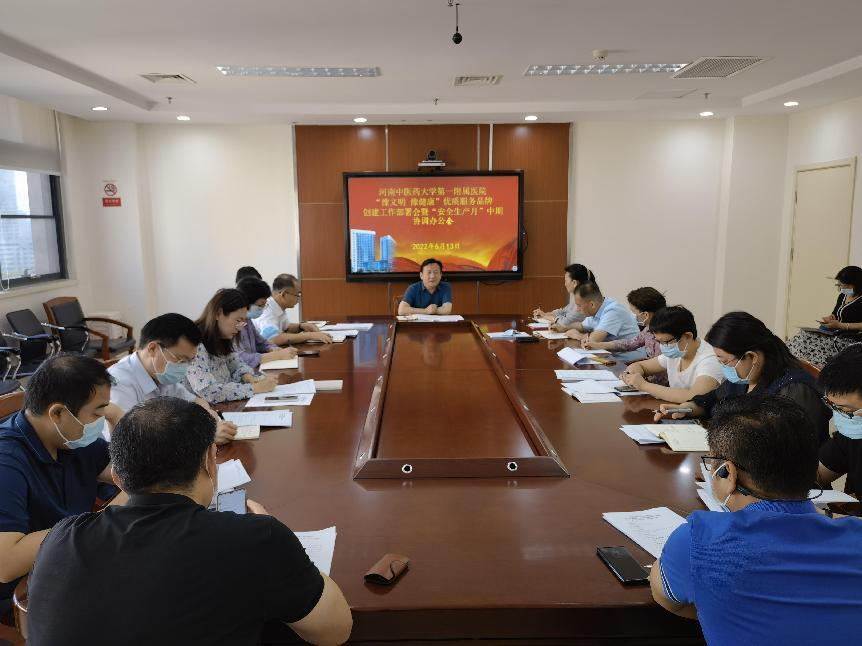 会上张婉红宣读了省文明办、省卫健委精神文明指导委员会《关于在全省卫生健康行业开展“豫文明 豫健康”优质服务品牌推选的通知》。丁波宣读关于《leyu·乐鱼(中国)体育官方网站第一附属医院关于开展2022年“安全生产月”活动的通知》。会议对“豫文明 豫健康”优质服务品牌创建工作和医院“安全生产月”活动进行了安排部署,通过研究讨论明确了任务目标,细化了工作措施,提升了大家对精神文明和安全生产的思想认识和责任压实。