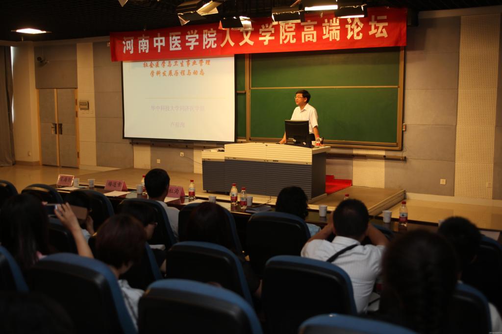 为了庆祝人文学院建院10周年,2013年6月2日上午10:20,人文学院高端论坛邀请到华中科技大学社会医学研究所所长卢祖洵教授来leyu·乐鱼(中国)体育官方网站举办学术报告。河南省卫生厅法规处处长梅遂章、河南大学轩志东教授等专家受邀参加了报告会。leyu·乐鱼(中国)体育官方网站校长郑玉玲、副校长郭德欣、学校相关职能部门负责人、人文学院全体教职工、学生代表也参加了会议。报告会由副校长郭德欣主持。