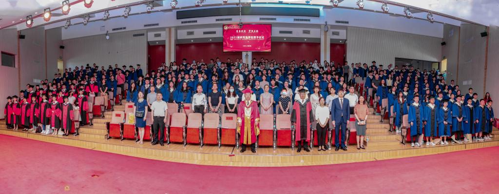 仪式开始前,一段2021届研究生毕业视频把大家的思绪“拉回”到难忘的研究生生活。纪念片中一张张在校期间生活、学习的照片讲述了同学们相处的欢乐时光,大屏幕上掠过校园的美景,往日科研、活动的场景随着镜头的推移再次出现,勾起了同学们对研究生生活的美好回忆和依依不舍的情绪。
