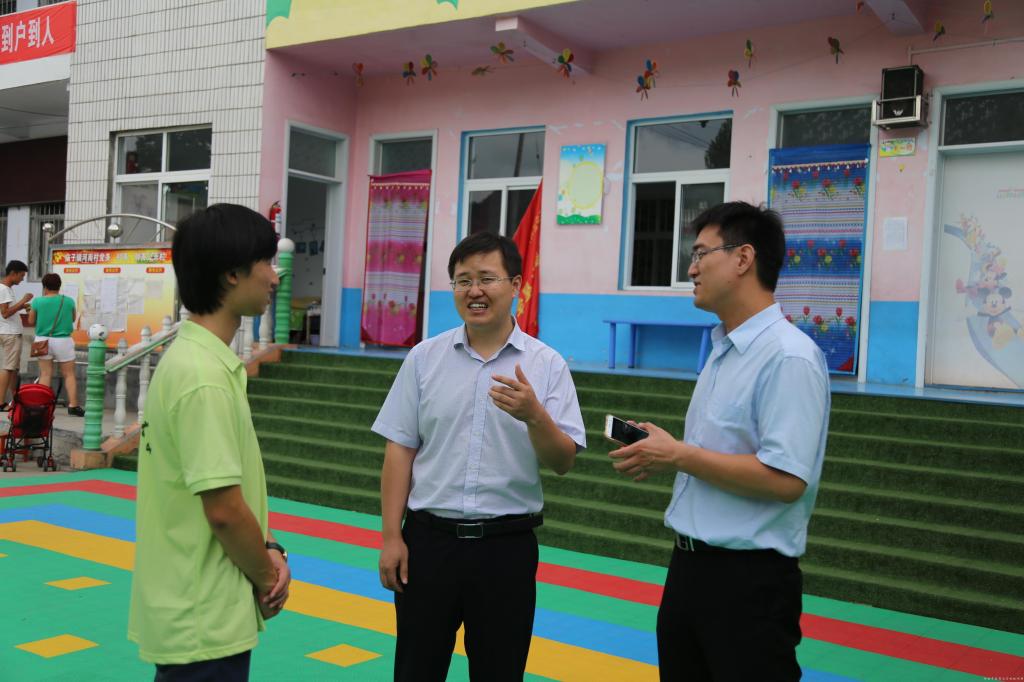 在服务团驻地——河南村幼儿园,葛士方副书记一行听取了带队老师李志轩关于服务团医疗、支教志愿活动开展情况(当日接诊病人185人分布在河南村周边的14个村庄,通过乡亲口口相传,就诊患者日益增多),并深入到义诊诊疗现场看望随队专家——一附院中医儿科冯斌博士、三附院疼痛科主任刘宜军博士及基金会各位志愿者,向乡亲们了解服务团的诊疗效果。教室里60多个小朋友们朗朗的读书声吸引了大家的注意,正在开展的是基金会特色项目——“希望之星”学校留守儿童支教活动。随后,葛书记一行还查看了师生们的生活场所,并为服务团赠送了毛巾、香皂等生活用品。