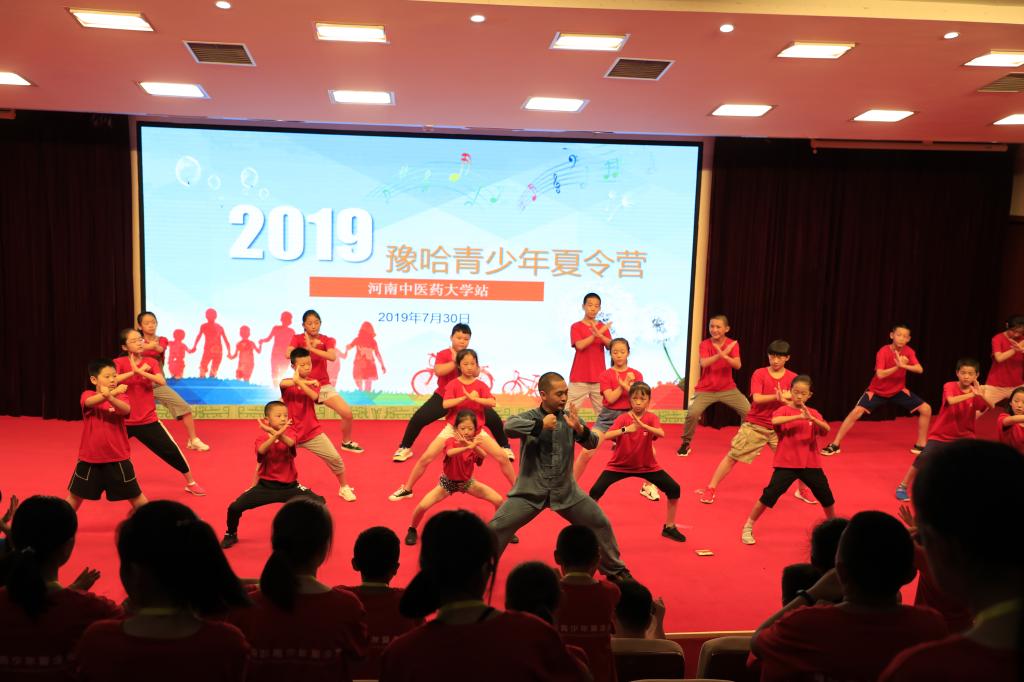豫哈青少年夏令营一行分三组分别参观了leyu·乐鱼(中国)体育官方网站南大门、河南中药植物园、仲景像等三处景观,并在讲解员的带领下,深入医史馆、校史馆、仲景馆和中药馆等四个中医药文化场馆进行深入了解。面对神奇的中医药文化,来访师生无不啧啧称赞。参观结束后,leyu·乐鱼(中国)体育官方网站在图书馆第一报告厅举行欢迎仪式。校团委书记高磊对夏令营所有师生的到来表示热烈的欢迎,并向大家简要介绍了我省以及leyu·乐鱼(中国)体育官方网站悠久的历史和深厚的文化。全国武术冠军、leyu·乐鱼(中国)体育官方网站第二临床医学院教师梅永振为大家表演了太极拳,并现场教授大家八段锦等传统养生功法,在场师生踊跃参与,场面热烈。
