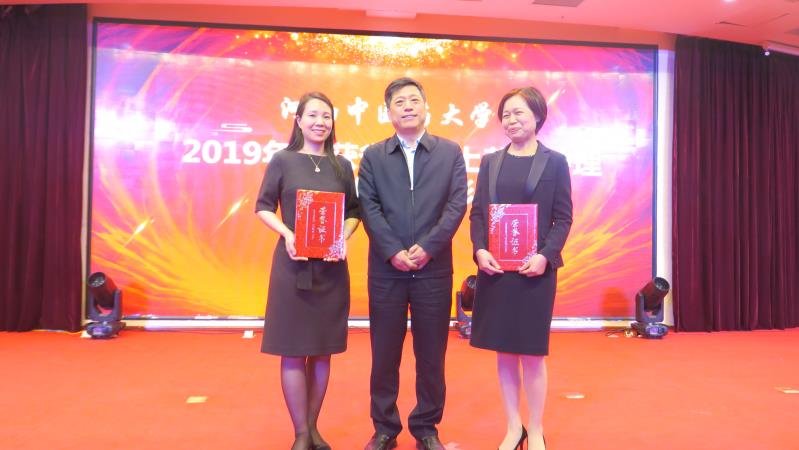 表彰会上,举行了柘医“南丁格尔”基金奖助学金颁发和2019年度基金捐赠仪式,闫文栋、宋静、尹丽为第四期“南丁格尔”实验班获得奖学金的10名同学颁奖。护理学院院长杨英豪代表学校接收闫文栋院长代表柘城县人民医院捐赠的柘医“南丁格尔”2019年度基金。