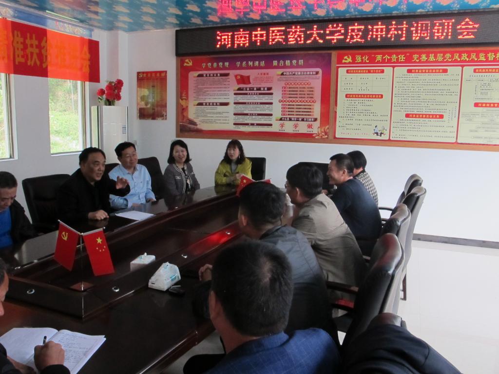 慰问结束后,在村委会会议室召开了座谈会。座谈会上,张小平认真取了胡斌、马运锋就巩固脱贫攻坚成果情况、中药材种植和茶产业发展情况、党建带团建情况及下一步工作计划等汇报。并对驻村工作队取得的成绩给予充分肯定,对下一阶段工作提出新要求:一是持续巩固拓展脱贫攻坚成果。进一步加大就业和产业扶持力度,扎实做好易地搬迁后续帮扶工作,尤其是对皮冲村低收入人口的动态监测,建立常态化帮扶机制,防止返贫。二是加强党建引领作用。建强基层党组织,充分发挥基层党组织的战斗堡垒作用,把每位党员的先锋模范作用发挥出来,和广大群众拧成一股绳,形成皮冲村谋发展促振兴的整体合力。三是擦亮“全国生态文化村”这块牌子。皮冲村作为全省六个“全国生态文化村”之一,一定要用好这张名片,主打“绿水青山牌”,把村旅游业发展起来,形成新的经济增长点,助力皮冲村乡村振兴。张小平叮嘱驻村工作队队员要注意身体,有困难及时向学校汇报,学校会当好后盾,确保精准帮扶任务圆满完成。