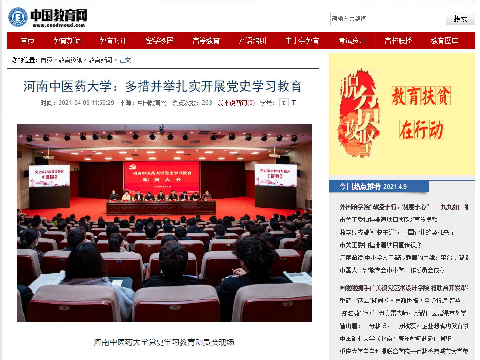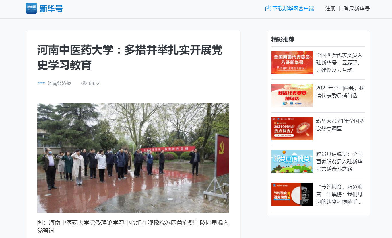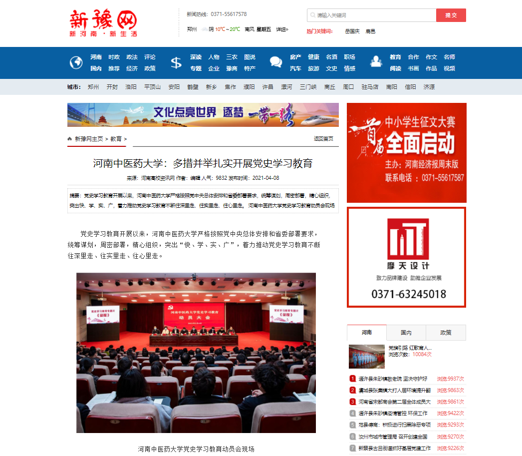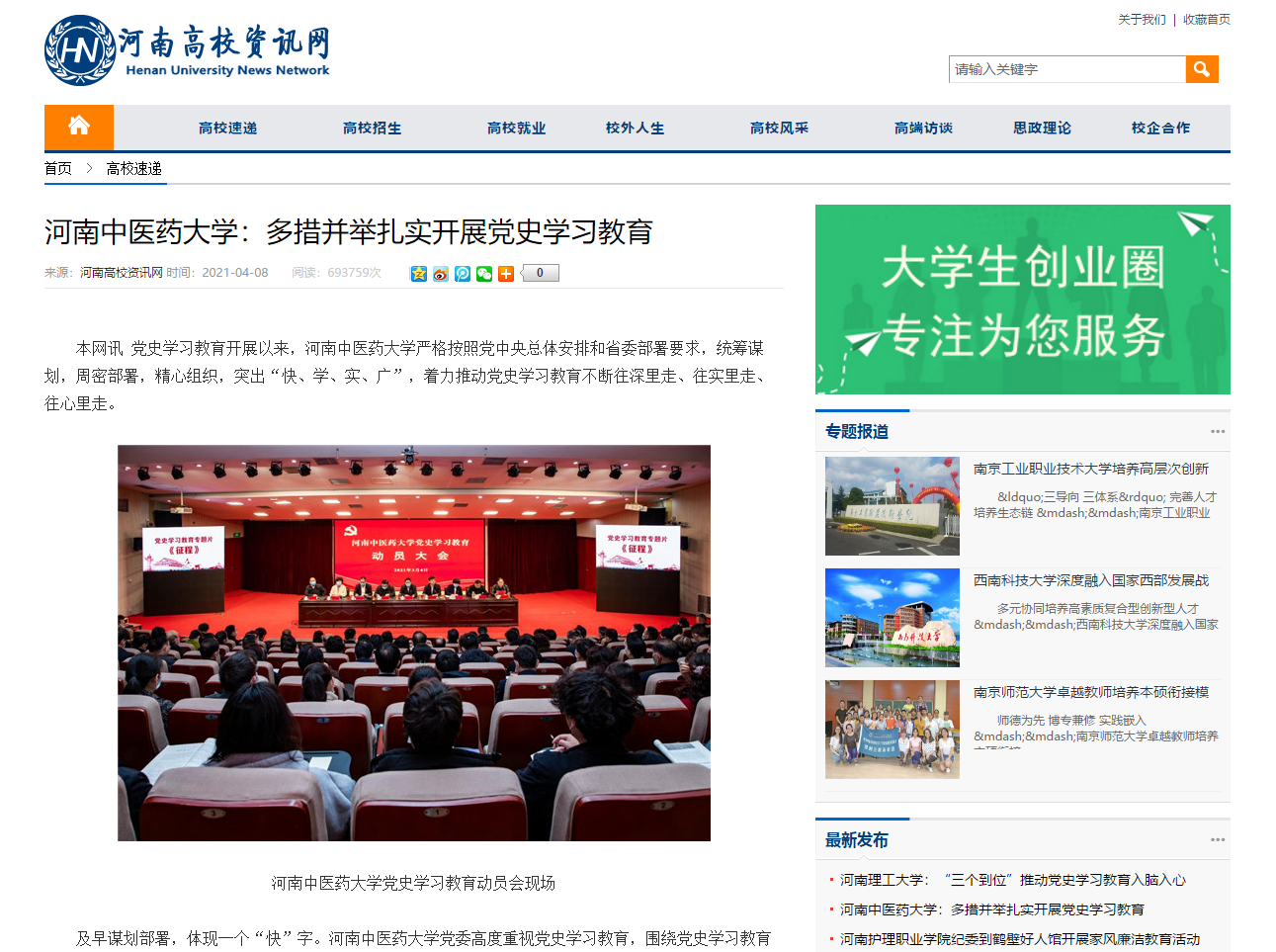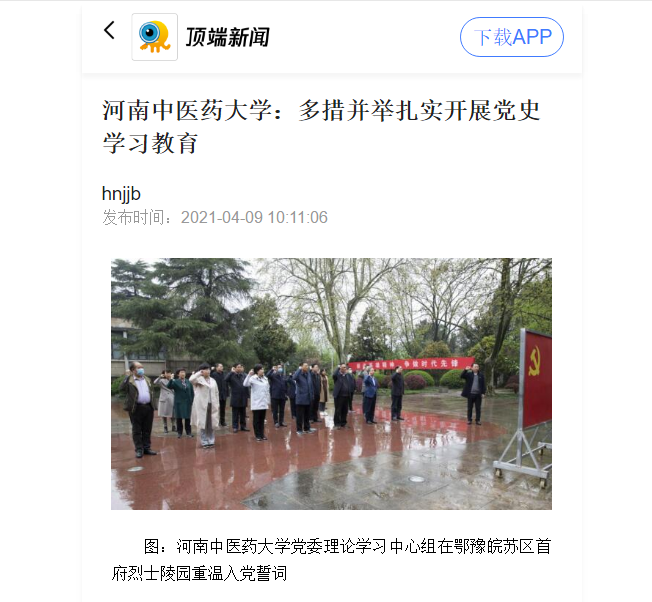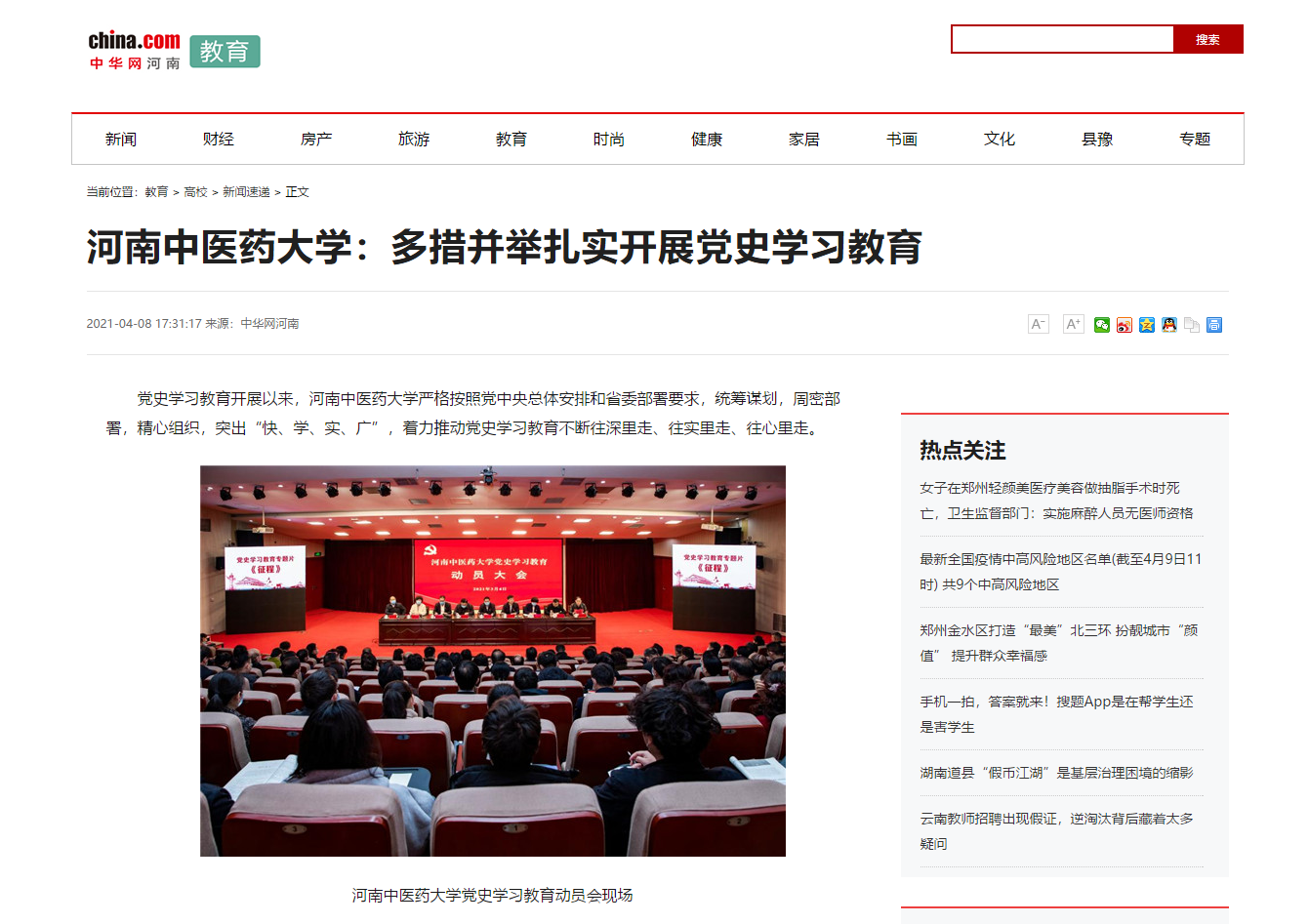 编者按:2021年4月8日-10日,新华网客户端、光明日报客户端、人民日报海外网、人民日报客户端、中国网、央广网、中国教育网、中华网、中华高校网、中新资讯网、大河网、顶端新闻、河南高校资讯网、消费日报、河南经济论坛、新豫网、网易新闻等数十家媒体对leyu·乐鱼(中国)体育官方网站多措并举扎实开展党史学习教育进行报道。
