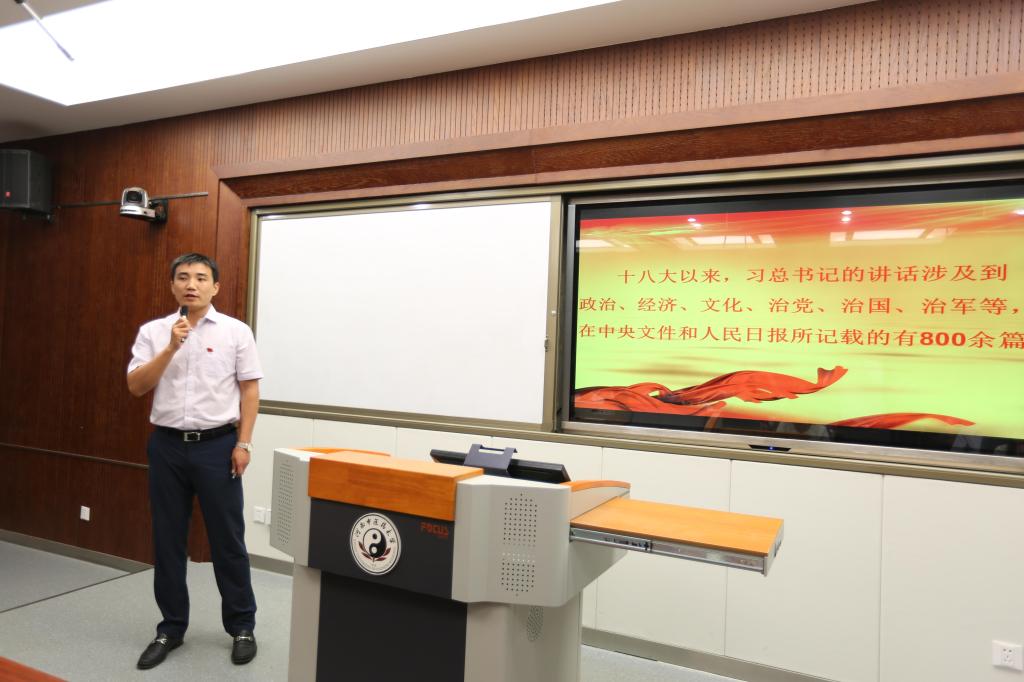 药学院党委参赛选手杨文胜副书记在讲授《不忘初心 坚定信仰》