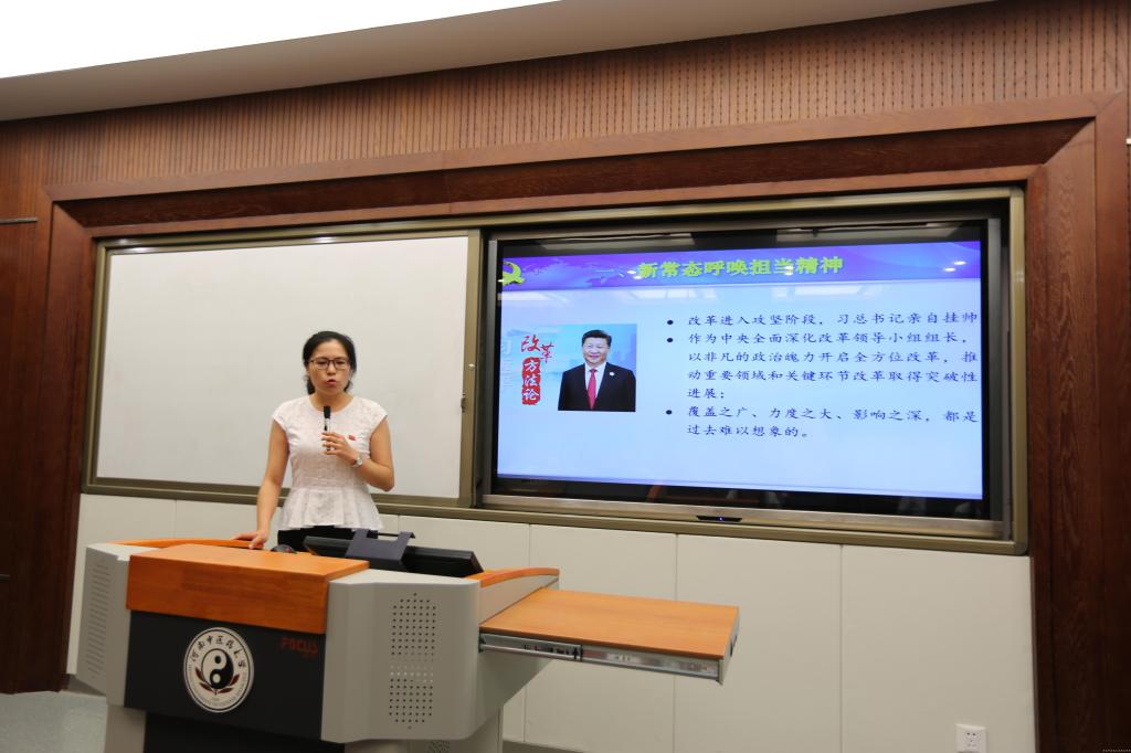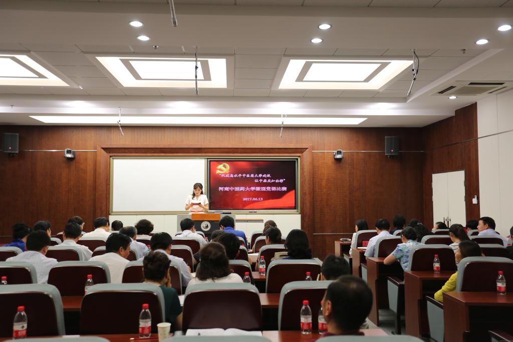 为深入学习贯彻习近平总书记系列重要讲话精神和党中央治国理政新理念新思想新战略,推动“两学一做”学习教育常态化制度化,引导广大党员干部加强党性锻炼,坚定理想信念,leyu·乐鱼(中国)体育官方网站于2017年6月13 日下午在教学实验大楼A633举行“促进高水平中医药大学建设让中原更加出彩”微型党课比赛。校党委副书记张丽霞,组织部部长、人事处处长孟宪锋,宣传部部长刘保庆,学工部部长、学生处处长刘金厂,校工会副主席曹蕴俐,校团委书记郭婧担任评委,校党委副书记郭德欣观看了比赛。本次比赛由校团委副书记王晓蕊主持。