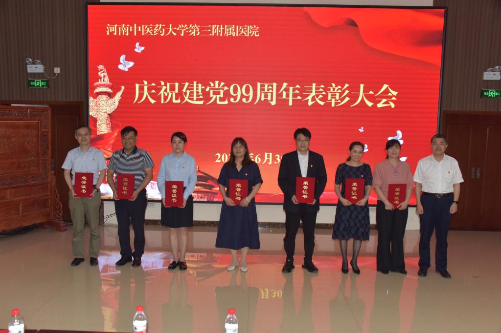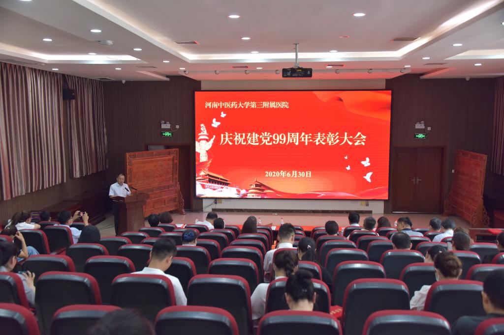 本网讯(文/李志刚 图/田辉)2020年6月30日,三附院召开庆祝中国共产党成立99周年暨表彰大会。院党委委员和各基层党组织书记、委员及党员代表,受表彰人员,预备党员、入党积极分子代表参加会议。党委副书记陶洁主持大会。