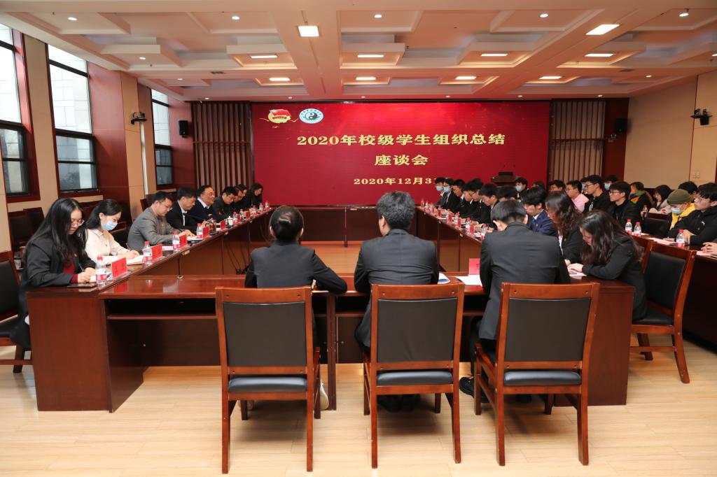 座谈会上,校学生会、大学生社团联合会、大学生艺术团、大学生新媒体中心、“杏林之声”广播站、大学生仪仗队等校级学生组织负责人,从思想引领、组织建设、特色工作、荣誉成绩等方面,依次对2020年工作进行了汇报,指出了工作中存在的问题和不足之处,并作了新一年工作规划。