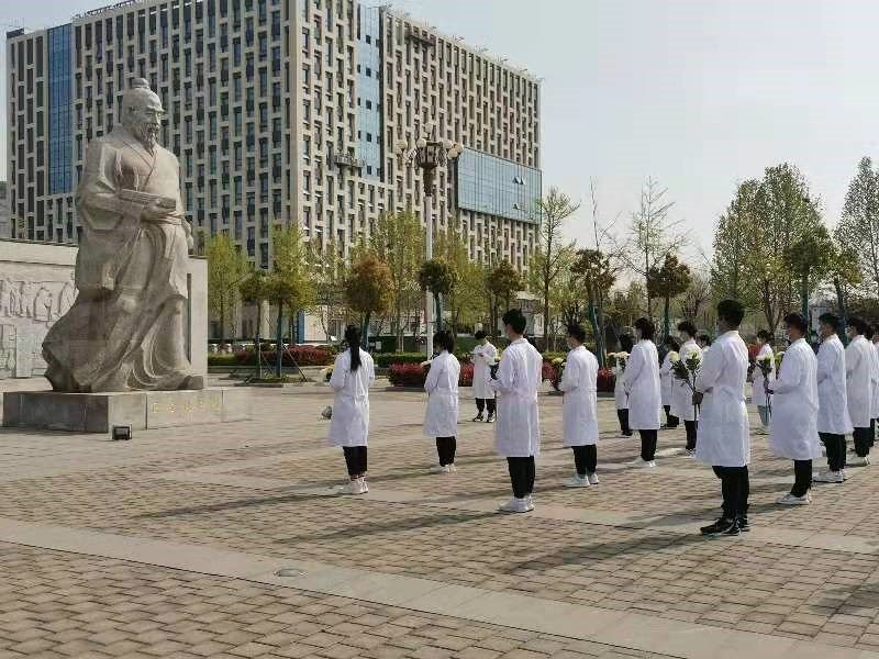 在4月4日上午,医院组织教职工生代表于医圣张仲景雕像前肃立,共同诵读《伤寒杂病论》序。