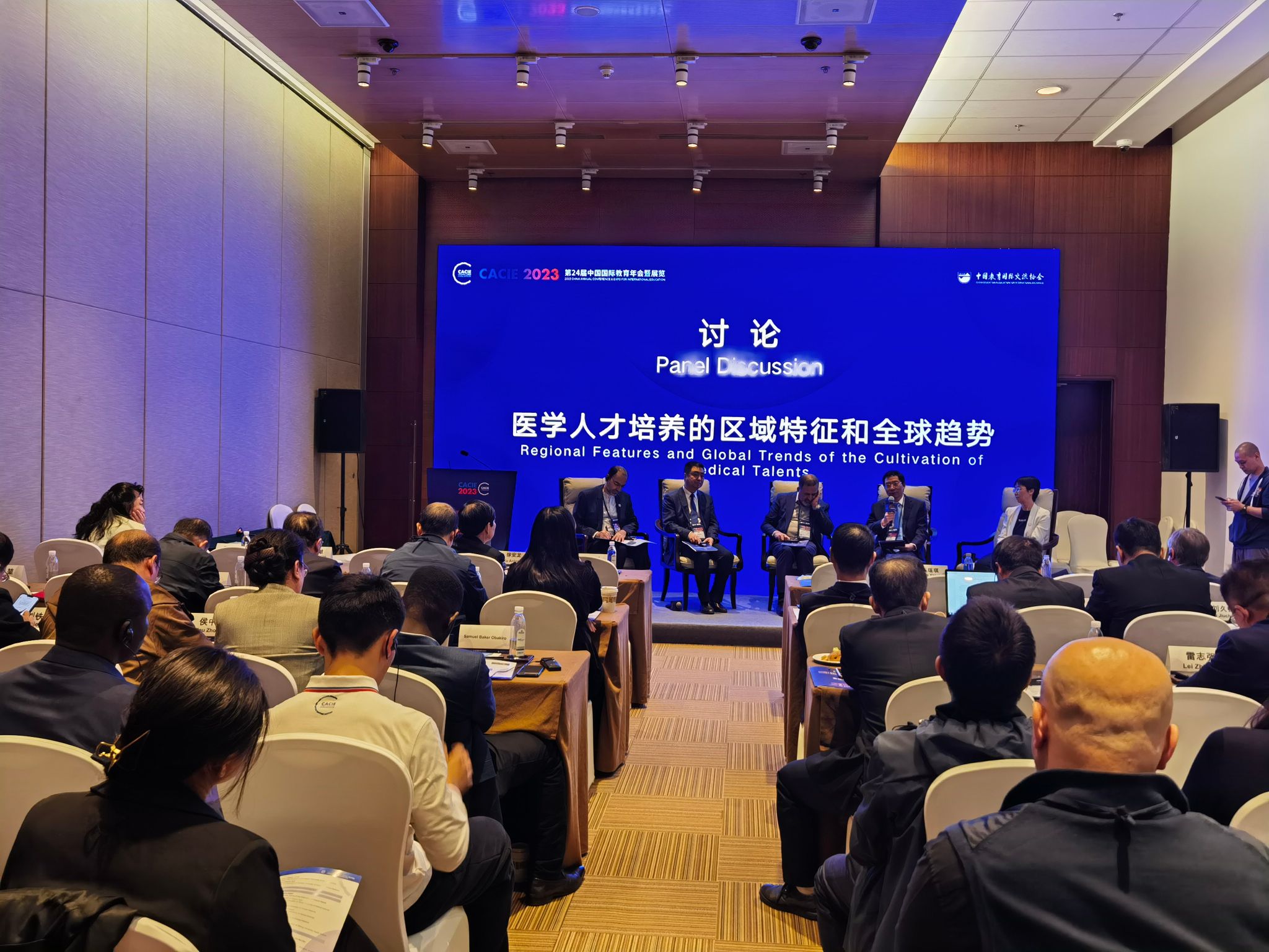 本网讯(文/李敬平 图/会务方供)2023年10月27日,在北京国家会议中心,校长王耀献应邀参加全球医学人才培养暨上海合作组织医学大学联盟校长论坛,并与兄弟高校校长进行了交流与讨论。
