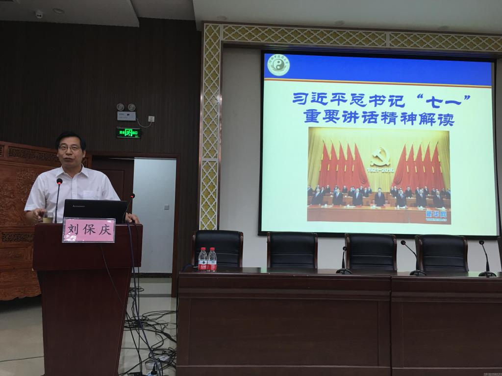 2016年8月5日下午,三附院邀请学校“两学一做”学习教育宣讲专家、校党委宣传部部长刘保庆在阶教二楼报告厅为全院党员干部上了一堂题为《习近平总书记“七一”重要讲话精神解读》专题党课。院领导班子成员、教职工生党员、预备党员和积极分子近200余人参加专题党课学习。党课由三附院党委副书记郭书敏主持。