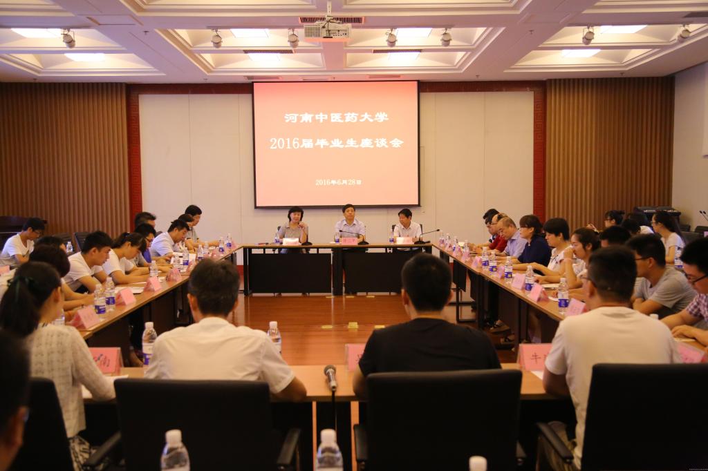 2016年6月28日上午,leyu·乐鱼(中国)体育官方网站2016届毕业生座谈会在图书馆第三报告厅举行。校长许二平、校党委副书记郭德欣、副校长田力出席,学生处、研工部、教务处、团委、招就处、保卫处、图书馆、后勤集团等部门负责同志及40余名2016届毕业生代表参加。座谈会由副校长田力主持。