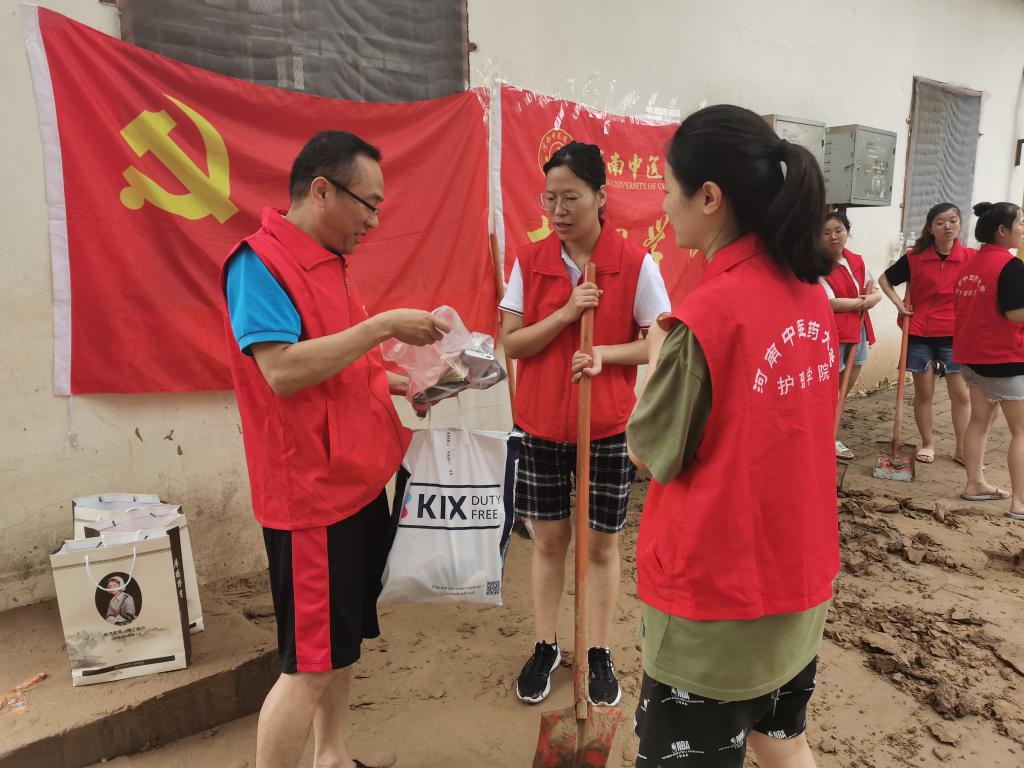 护理学院于7月22日紧急组织东明校区党员志愿者先锋队,志愿者先锋队从23日早上8点开始,协助后勤处清理校区淤泥。段晓鹏书记对于我院志愿者的支持与鼓励,激励了志愿者们更加心怀感恩、乐观生活、帮助他人、克服困难。