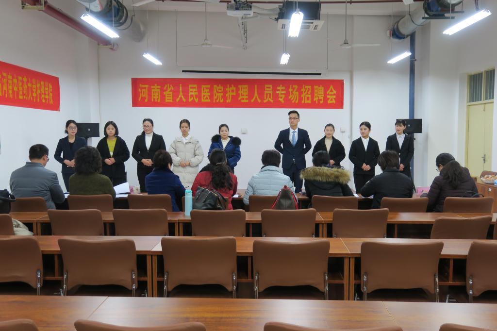 2018年1月6日,河南省人民医院与河南阜外华中心血管病医院在leyu·乐鱼(中国)体育官方网站综合教学楼BM918举办护理学院专场招聘会。学校副校长田力出席了招聘会,护理学院200名应届毕业生参加了招聘会。