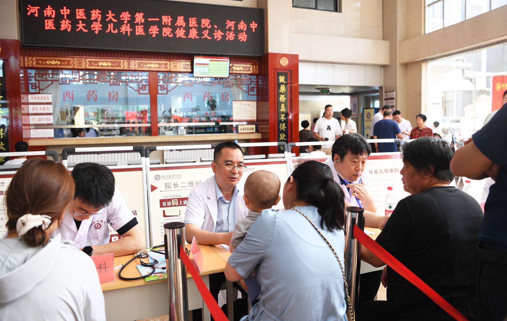 就业基地签约仪式进行的同时,儿科医学院组织的暑期三下乡社会实践专家义诊活动在栾川县中医院门诊大厅开展。leyu·乐鱼(中国)体育官方网站第一附属医院儿科冯刚、张岩、相恒杰,心血管内科李兴渊,消化内科刘江凯,神经内科徐进等随队专家在义诊现场,细致认真地为就诊的患者提供咨询服务,根据病情给出了健康指导和诊疗意见,社会实践小分队学生向群众发放健康知识宣传手册,进行中医药知识宣讲,在专家指导下为群众免费测量血压,开展相关医疗实践活动。