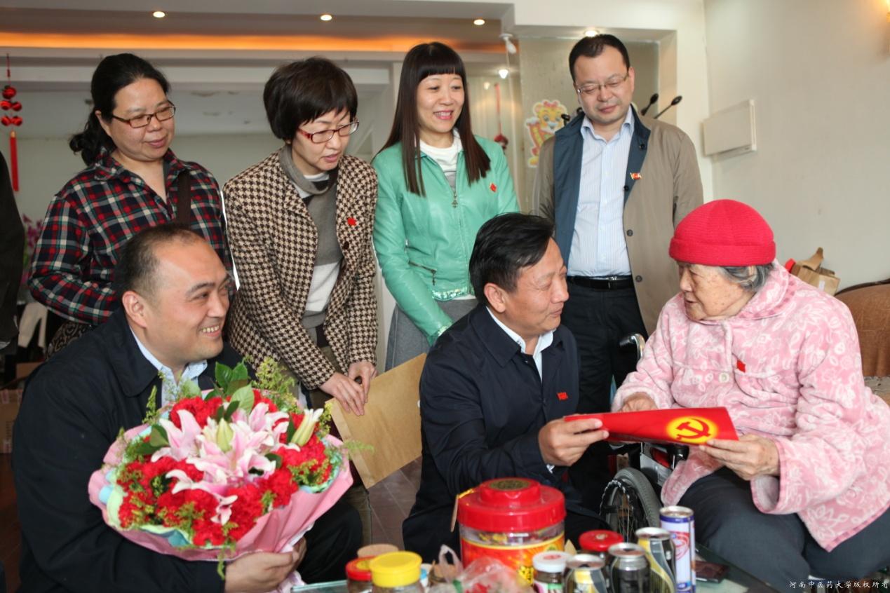 4月13日上午,医院党委书记翟剑波、副书记唐陆等一行来到张毅敏同志家中看望慰问,并庄重地把中组部颁发的“特殊党费证”交到张毅敏同志手中。