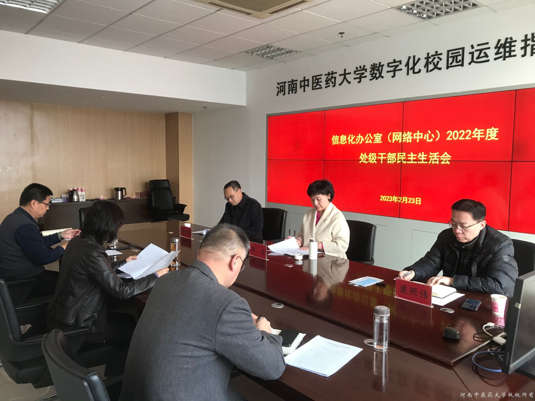 本网讯(文图/余孝奎)按照学校党委统一部署,2月23日下午,信息化办公室(网络中心)领导班子在A809室召开2022年度中层党员干部民主生活会。校党委委员、副校长田力莅临会议指导工作,校纪委监察专员办公室正处级组织员梁照伟,党委组织部帮扶办公室副主任郑明常列席会议,部门全体领导班子成员参加会议。会议由信息化办公室(网络中心)直属党支部书记申意彩主持。