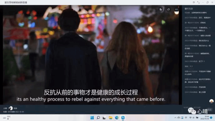 为了引导同学们积极应对压力与焦虑,举办了“影如心像,微色追行”心理云观影活动,观影活动包含齐心创辉煌、陪伴知情重、邂逅生情愫三个主题。同学们通过弹幕积极交流分享他们的所思所想,在内心深处产生共鸣,打开不同的心灵世界。云观影帮助同学们振奋精神,缓解了焦虑紧张等负面情绪,更好地度过充实而有意义的大学生活。