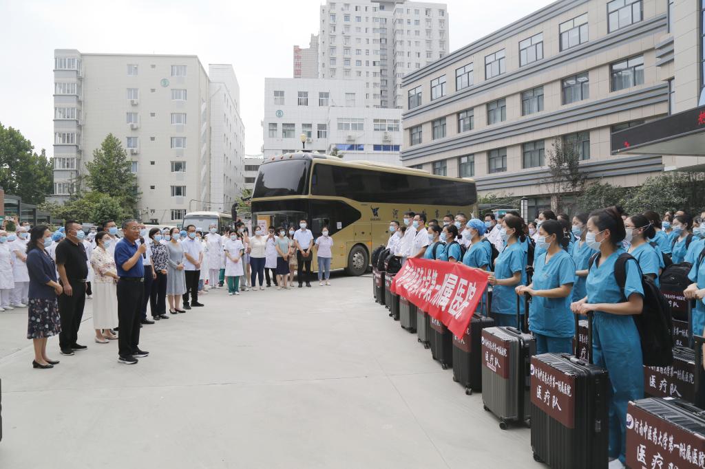 队伍集结完毕后,一附院院长朱明军等在郑院领导和相关科室负责人为医疗队员们举行了简短的欢送仪式。临行前,朱明军殷切嘱咐全体医疗队队员,希望大家不辞辛苦、不辱使命,充分发挥自身专业优势,以必胜的决心和坚定的意志,在加强自身防护的前提下,全力以赴投入到救治一线的战场中,圆满完成医院党委交付的任务。