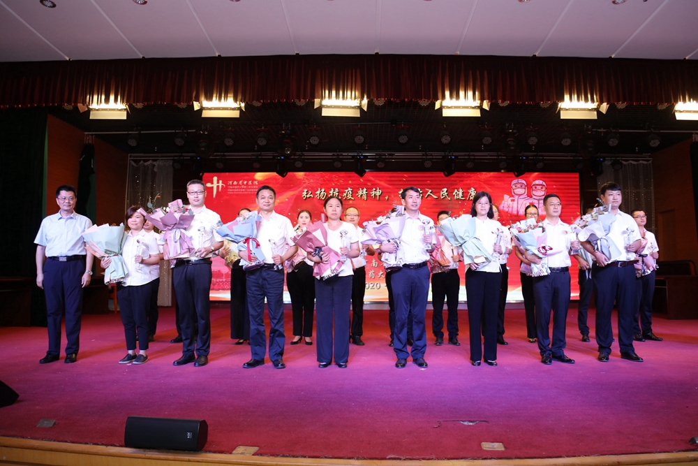 校党委委员、副校长李建生为5名省级医疗救治专家及26名院内疫情防控一线医师颁奖