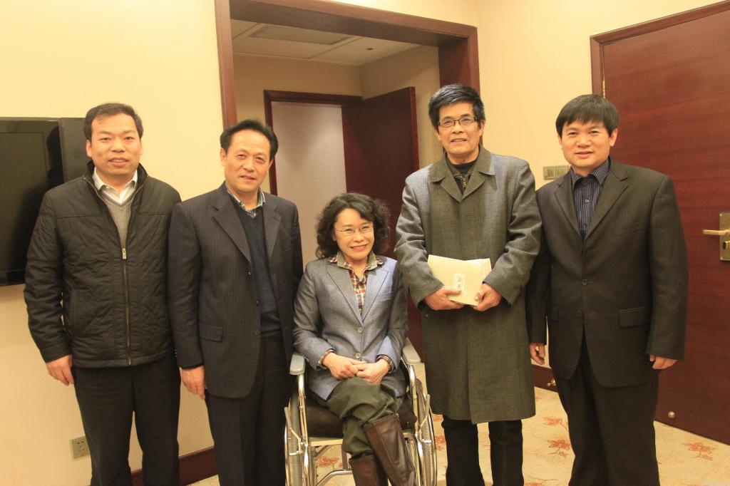 国家残联主席张海迪赠书朱忠宝教授并合影留念