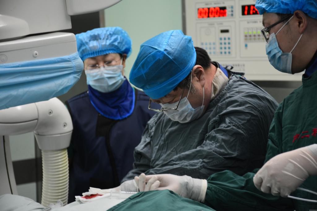 7月11日的交流活动内容包括心血管内科教学查房、3例心血管疑难病例会诊、7例心血管介入手术演示(其中复杂条件下的支架介入2例及起搏器安装1例)、心血管疾病特色护理技术交流及杜廷海教授作题为“恶性心律失常和高危型电生理异常综合征诊治进展”学术讲座。交流活动从上午9点开始一直持续到下午7点半。为了争取时间,中午leyu·乐鱼(中国)体育官方网站专家在手术室轮换用餐,保证手术连续进行。在 10个多小时的连续、紧张工作中,leyu·乐鱼(中国)体育官方网站三位专家通过标准化的教学查房及高水平的学术讲座与交流,诊疗思路清晰的疑难疾病会诊,技术精湛的手术示教,对受援单位心血管病专业技术提高、专业人才培养、学科规范化建设等起到一定的帮助作用。