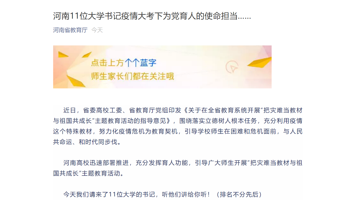 河南11位大学书记疫情大考下为党育人的使命担当……