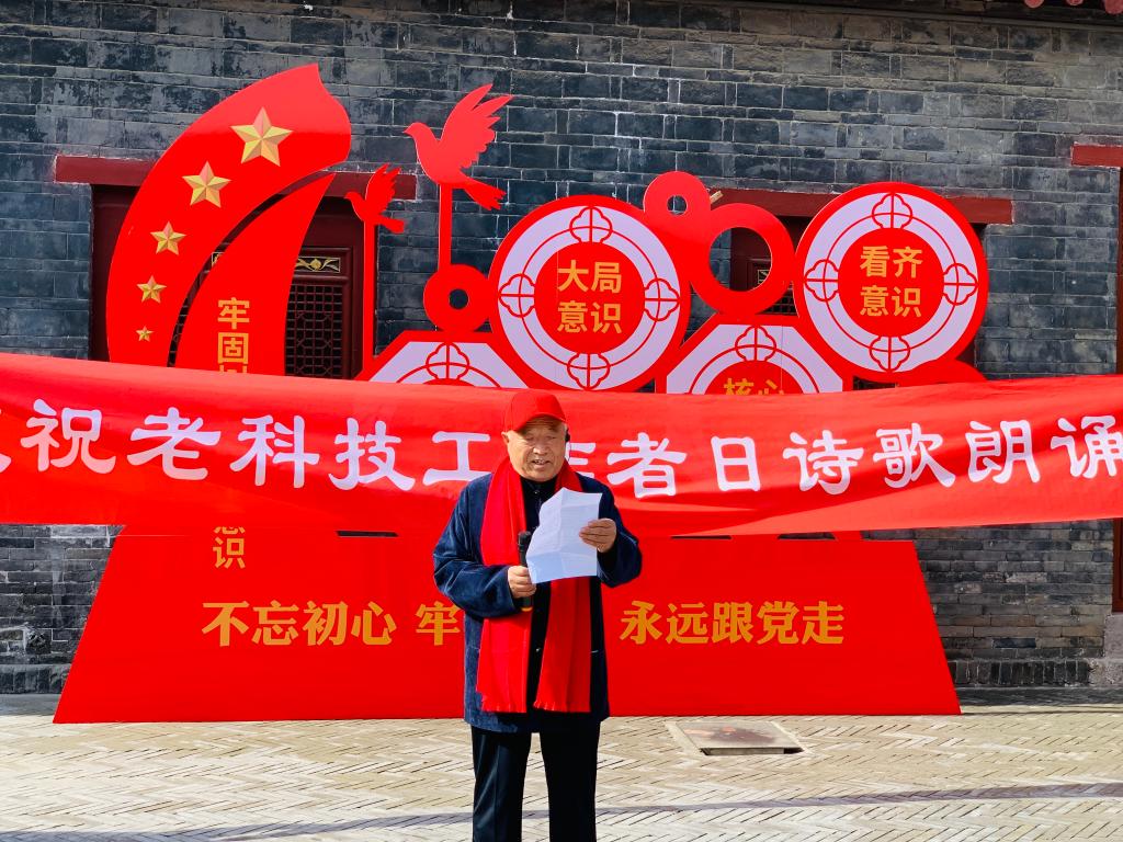 为深刻学习伟大抗战精神,怀着对革命先烈的无限敬意,老科协协会就在展览馆的小院里现场举办了“庆祝老科技工作者日诗歌朗诵会”。朗诵会上,全国老科技工作先进个人代表许敬生教授以诗词朗诵的形式,在深情的音乐声中充满激情的朗诵了毛泽东写在战争时期的诗词《采桑子.重阳》,“战地黄花分外香,岁岁重阳今又重阳”,诗句体现出了老一辈无产阶级革命家的浪漫情怀与对革命前景的乐观和信心,许教授的朗诵也表达对老同志们重阳节的祝福。诗歌《我爱你---中医》,由全体女科技工作者代表共同朗诵,她们声情并茂娓娓道来,表达了她们对医学专业的无限热爱与执着追求,以及身体力行更好服务社会、服务人民的决心。最后,全体人员共同朗诵了诗歌《中国精神》,发自内心的赞美了祖国强大、人民的富强,洪亮的声音把活动推向了高潮。
