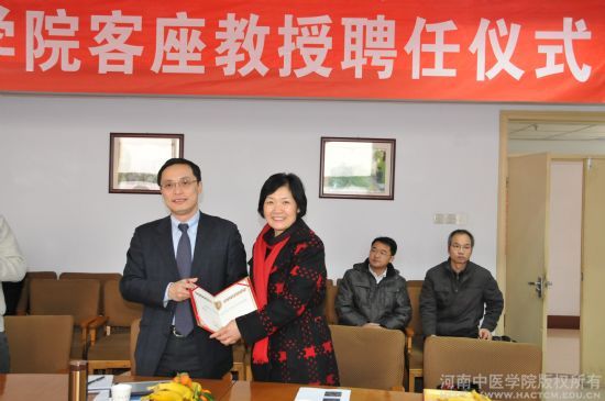 2012年2月9日上午,受leyu·乐鱼(中国)体育官方网站邀请,中国中医科学院副院长黄璐琦带领他研究团队的部分成员到leyu·乐鱼(中国)体育官方网站指导工作并受聘为leyu·乐鱼(中国)体育官方网站客座教授。我院院长郑玉玲代表学校向黄璐琦副院长颁发了聘书和leyu·乐鱼(中国)体育官方网站校徽。副院长刘文第教授主持聘任仪式,药学院负责人以及生药学科的专业教师参加了聘任仪式。