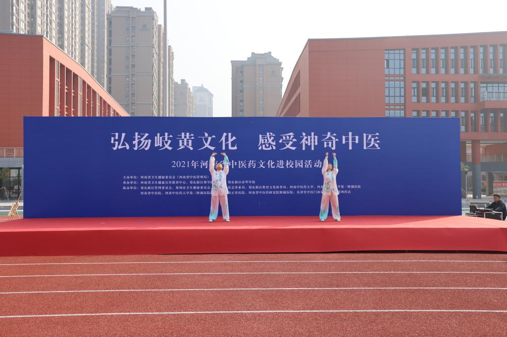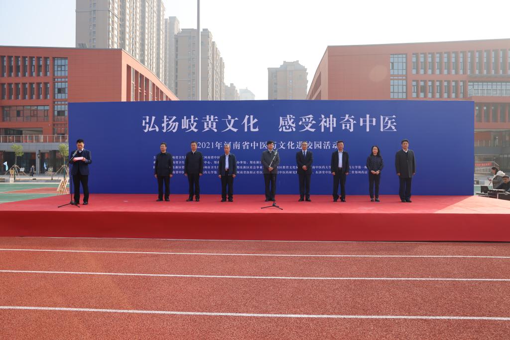 本网讯(文/蔡源源)为弘扬中医药传统文化,传播中医药健康知识,提升青少年中医药健康素养,落实《中医药文化传播行动实施方案(2021—2025年)》,2021年10月22日世界传统医药日当天,河南省卫生健康委在郑东新区春华学校开展“弘扬岐黄文化,感受神奇中医”2021年河南省中医药文化进校园活动,leyu·乐鱼(中国)体育官方网站党委委员、副校长李建生应邀出席此次活动。