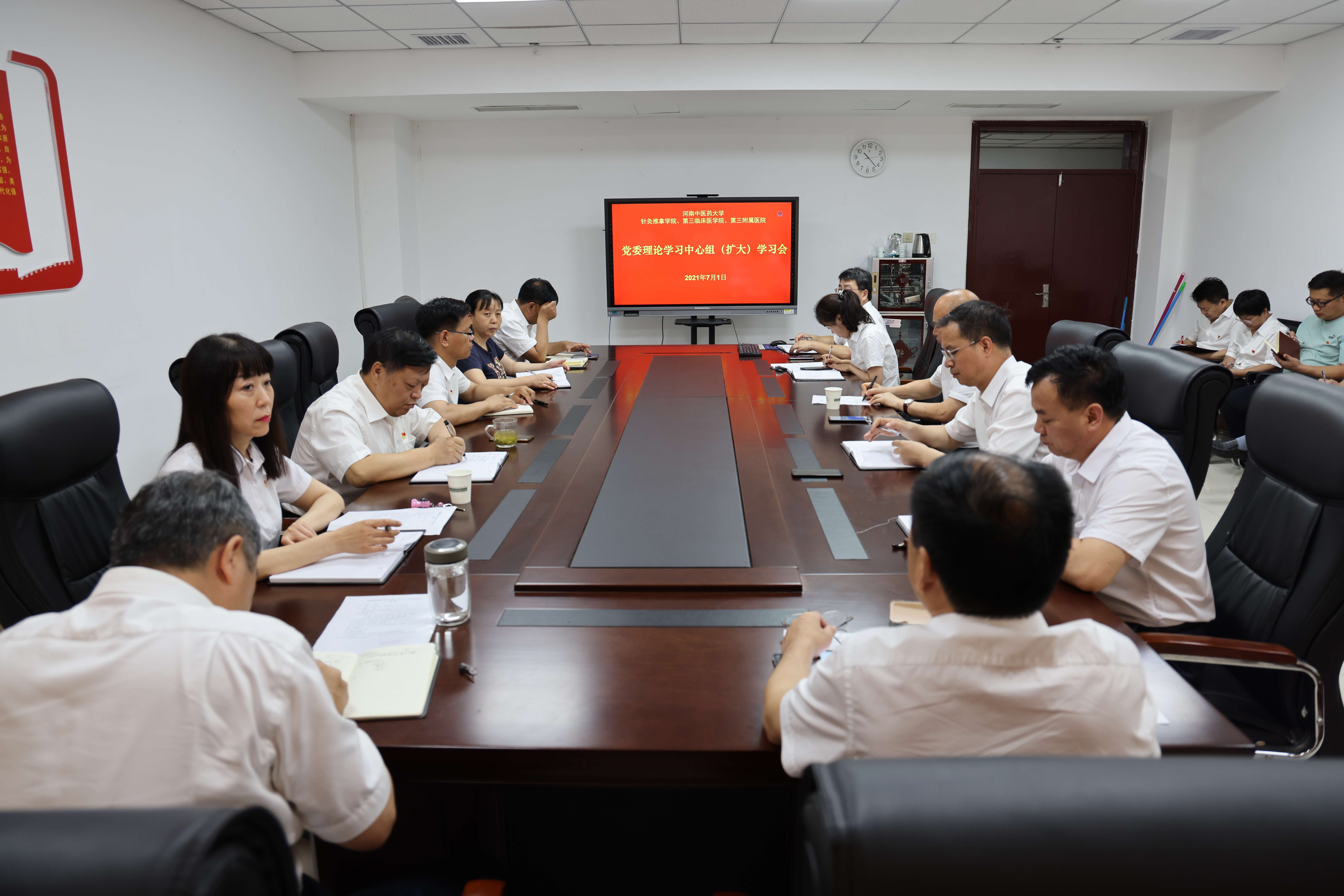 本网讯(文/图 潘向昆)2021年7月1日上午,庆祝中国共产党成立100周年大会在北京天安门广场隆重举行。中共中央总书记、国家主席、中央军委主席习近平发表重要讲话。庆祝大会结束后,三附院党委第一时间召开党委理论学习中心组(扩大)会,学习讨论庆祝大会和习近平总书记重要讲话精神。在郑领导班子成员、各党总支、直属党支部书记参加学习讨论。