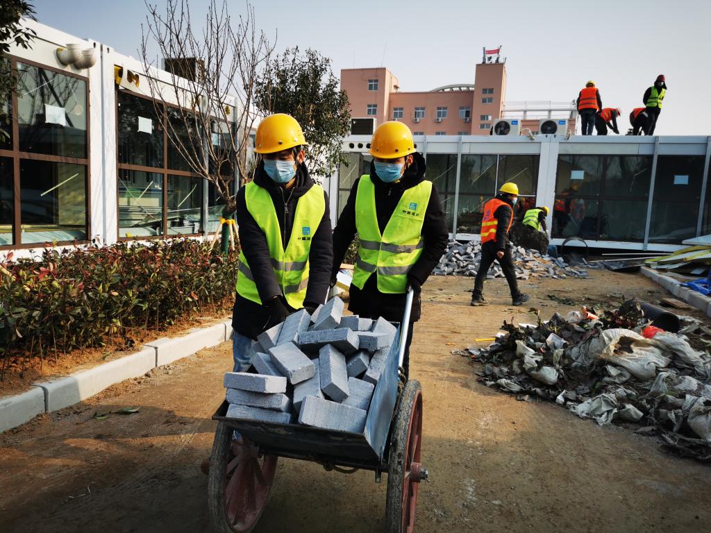 本网讯(文/李志轩 李京华 图/常浩)2020年2月4日下午,在热火朝天的河南“小汤山”医院建设工地现场,来自leyu·乐鱼(中国)体育官方网站的在校大学生朱顺超,正和工友们一起运送建筑材料。