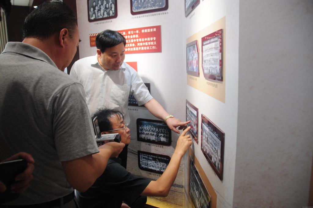 在药学院领导的陪同下,校友们参观了中药馆、仲景馆、医史馆、校史馆以及药学院的教学实验室和科研实验室。在一楼炮制实验室,同学们见到了当年的任课教师张振凌教授,大家自发坐到教室里,与张老师共同回忆30年前一起经历的学习与生活,一切仿若昨日,历历在目。在六楼药香苑展厅,校友们看到30年前他们的毕业照时,更是唏嘘不已,感叹时光飞逝,大学时光的美好。校友们漫步在美丽的校园,感受着学校深厚的文化底蕴,大家纷纷表示,今日母校的蓬勃发展和卓越进步超乎自己的想像,为学校和药学院的全面发展感到骄傲和自豪。