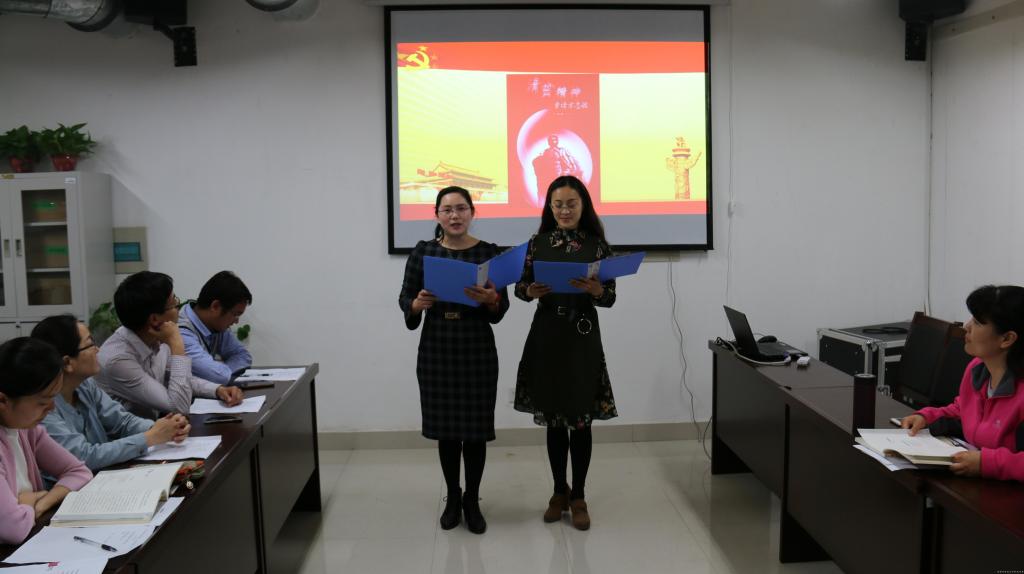 教工第一党支部井晓磊和张琼老师朗诵了《清贫》,精心准备的音乐和背景准备赢得大家的赞许,张琼老师说革命时期的清贫与我们现在的生活形成鲜明的对比,方志敏作为党的干部掌握着大量经费使用权,自己却清贫如洗,一心向着革命,这正是现在党员干部在党风廉政教育学习的典范;教工第二党支部宋晓丽和王莉莉老师朗诵了《我的自白书》,王莉莉老师向大家讲述了该诗的在牢中的书写背景,认为陈然在牢中极其艰苦的条件下仍然传达革命的火种,把对党的热爱和忠诚传递给每一个人,而我们工作中的困难与先烈们相比是何其微小,我们应该学习先烈们这种艰苦奋斗的精神和意志;学生第一党支部李桓、张文举、刘文老师及学生党员6人共同朗诵了《黑牢诗篇》,支部书记李桓老师说该诗是蔡梦慰同志在重庆渣滓洞看守所写成,很多革命先烈的诗章都写在牢狱之中,但仍坚持要救人民于水深火热之中,而我们生活在党旗下,美好生活来之不易,我们要珍惜现在的生活,努力奋斗;学生第二党支部朱其东、郭薇老师及学生党员6人朗诵了《我的自白书》和《囚诗》,支部书记朱其东老师说通过朗诵先烈诗章,同志们深受教育,深刻感受到了革命先烈们对党忠诚、无私奉献的革命情怀,也提醒我们要树立崇高境界和坚定的信念;朗诵最后,党总支书记尹丽朗诵了《我愿是激流》,她对这次活动总结说,现在重读先烈诗章,对先烈们的革命精神、坚定的信念感悟更深刻,更加理解了先烈们坚强的革命意志和信仰。