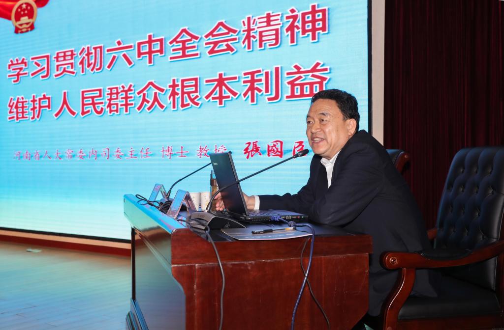 张国臣同志作题为《学习贯彻六中全会精神 维护人民群众根本利益》的报告