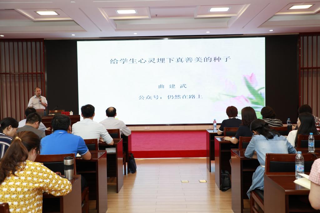 本网讯(文图/岳颀)2019年5月30日下午,leyu·乐鱼(中国)体育官方网站2019年辅导员系列培训在图书馆第二报告厅举行。全国“时代楷模”“全国优秀教师”“全国师德标兵”“全国辅导员年度人物”获得者、大连海事大学博士生导师曲建武教授以《给学生心灵埋下真善美的种子》为题,为leyu·乐鱼(中国)体育官方网站全体辅导员作报告。学工部、研工部、校团委相关人员及全体辅导员参加,培训会由校党委委员、工会主席张加民主持。