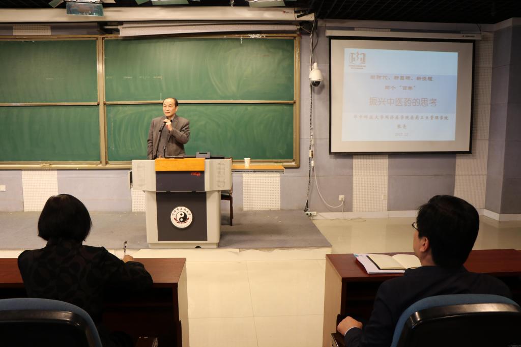 2017年12月19日下午,华中科技大学同济医学院张亮教授应邀做客leyu·乐鱼(中国)体育官方网站百家论坛,在教学实验大楼A634作了题为“新时代振兴中医药的思考”的学术报告。管理学院全体教职工、学生代表以及相关院系200余名师生聆听了报告,报告会由管理学院院长张丽青主持。