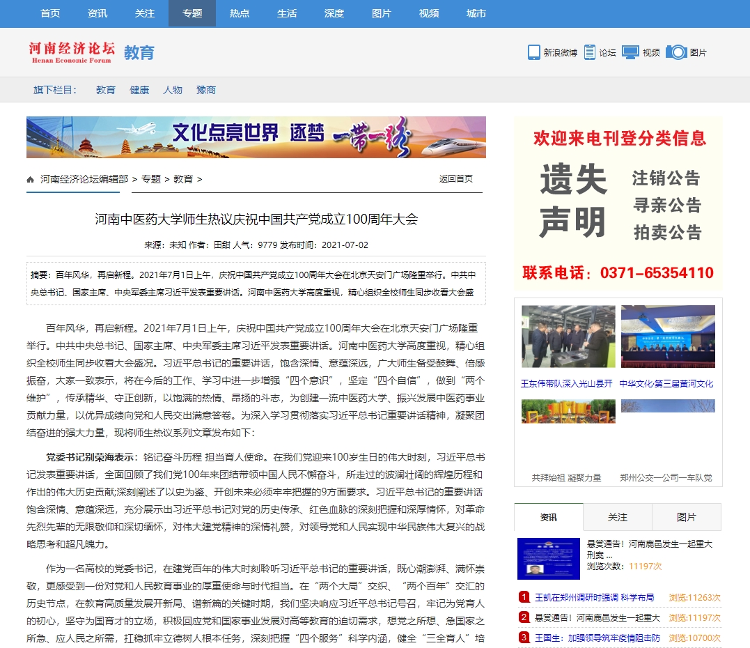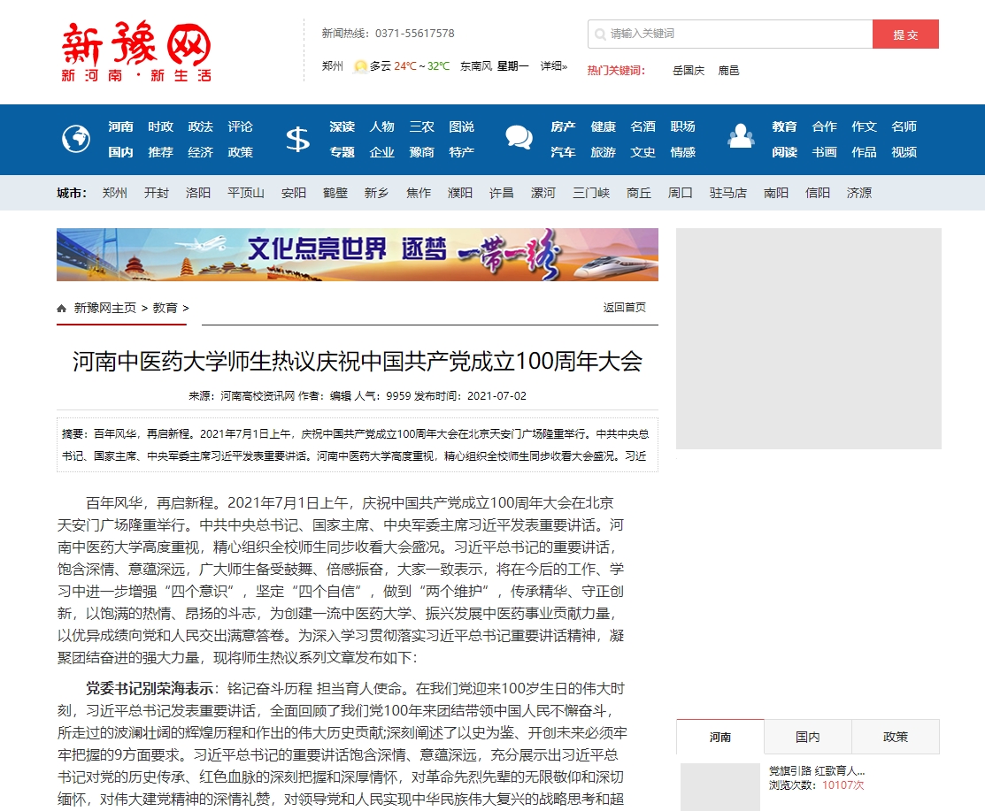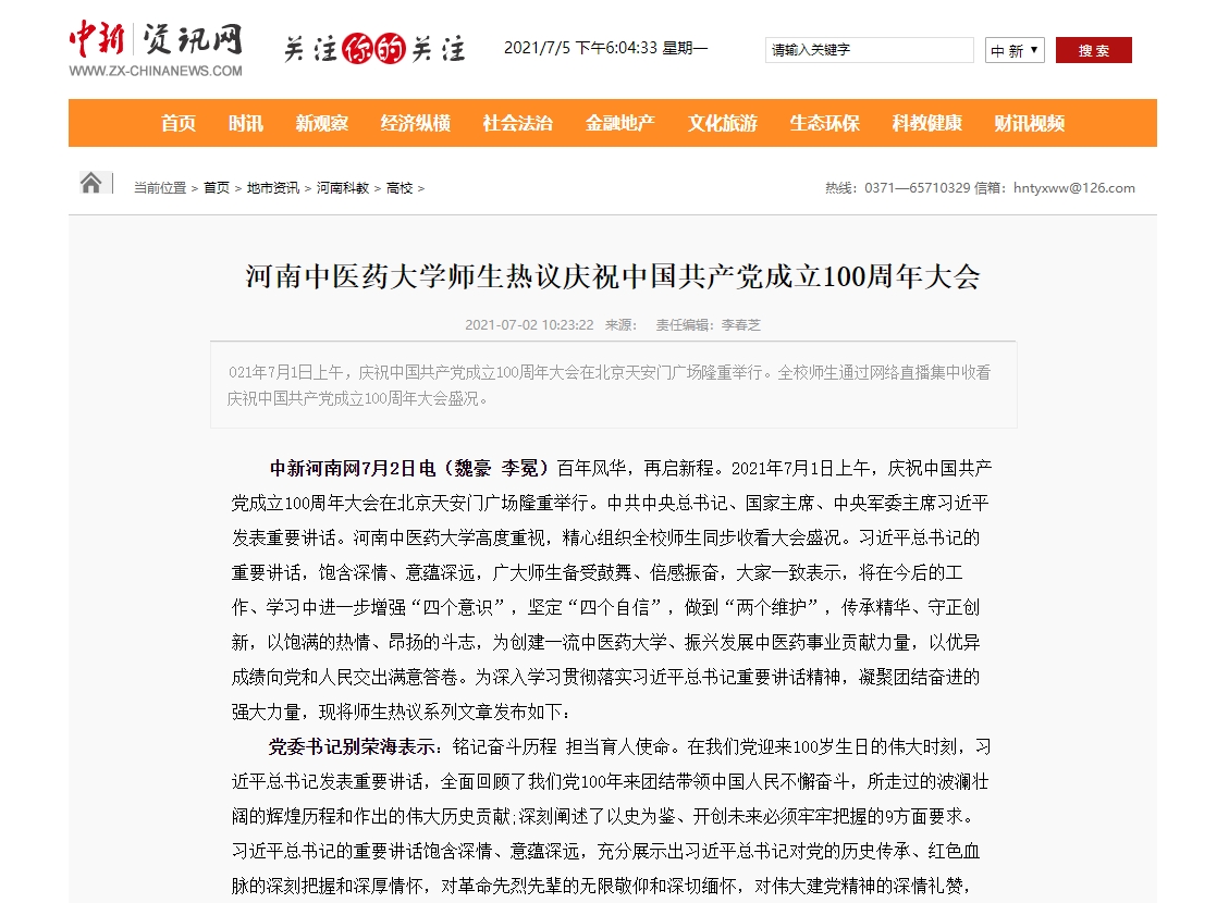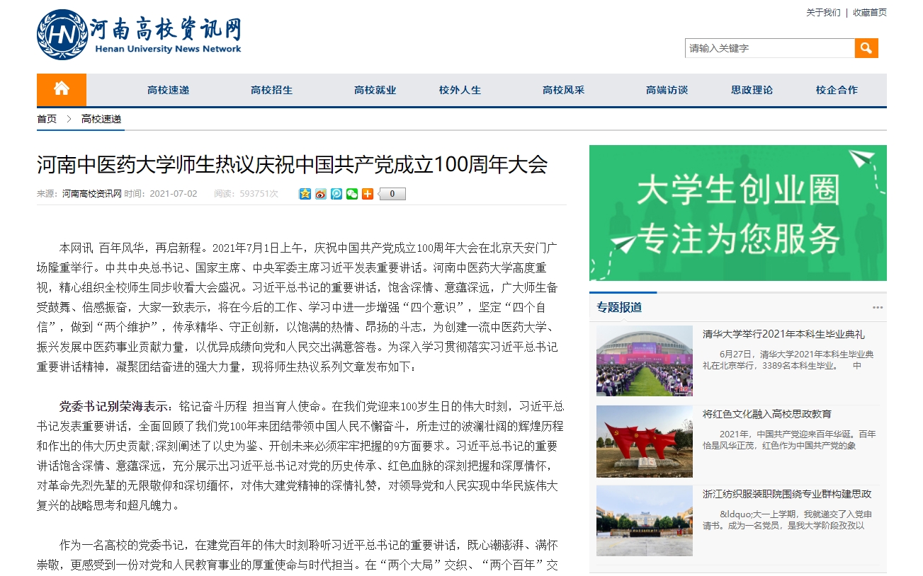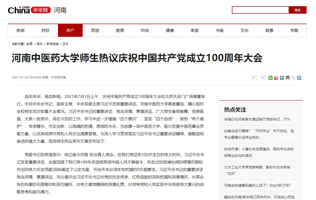 编者按:2021年7月2日,中华网、中国教育网、中华高校网、中新资讯网、河南高校资讯网、新豫网、河南经济论坛等多家媒体对leyu·乐鱼(中国)体育官方网站师生热议庆祝中国共产党成立100周年大会进行报道。