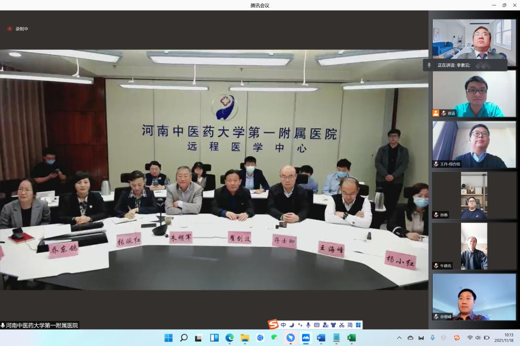 眼下凯旋在即,在院外接受隔离的队员们的情况更是牵挂着医院领导的心。为总结交流疫情救治经验,同时也为传达医院党委和全体教职工的关心慰问。2021年11月18日上午,一附院以视频连线的形式,召开了派驻抗疫医疗队线上总结会。医院党委书记翟剑波,党委副书记、院长朱明军等领导班子成员,医院副院长、国务院联防联控机制专家组成员李素云教授,医院副院长、派驻定点救治医院医疗队队长赵敏及全体成员等参加了会议。