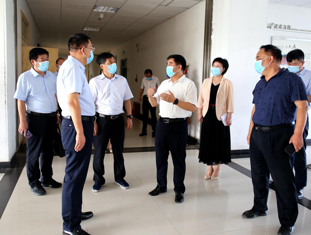 省教育厅副厅长、党组成员刁玉华(左一)一行检查指导授课教室