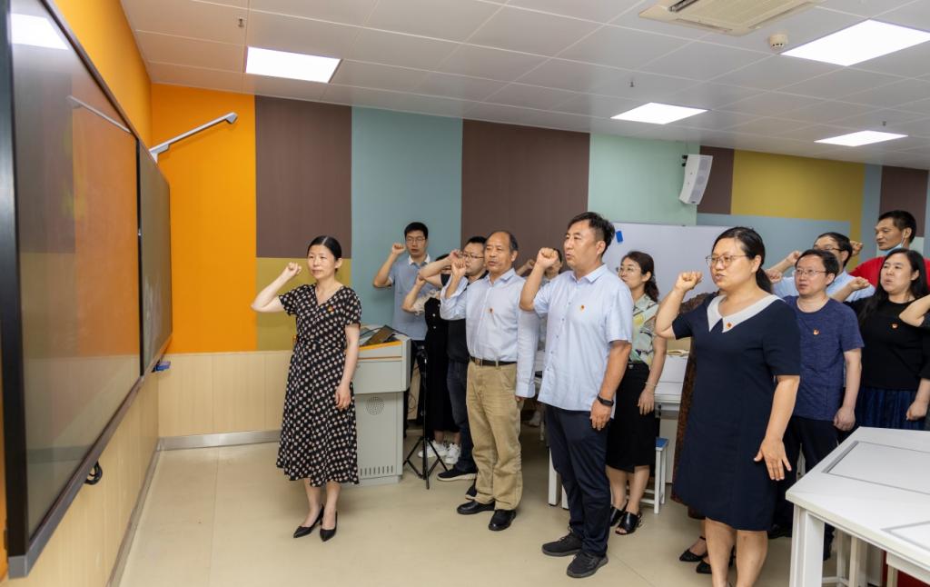 誓词在心,永葆初心。面对鲜红的党旗,全体党员重温入党誓词,字字掷地有声,句句铿锵有力,真挚地表达了对党忠诚、为党的事业奋斗终身的坚定决心和愿望。党员们以誓词为镜,审视自身,进一步增强“四个意识”、坚定“四个自信”、做到“两个维护”。