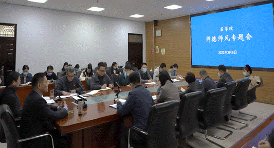 本网讯(文/王坦 图/荣文慧)为进一步提升教师队伍思想素质和职业道德水平。2022年3月8日下午,医学院在教学实验大楼A447会议室召开师德师风建设专题会。学院领导班子成员、各科室主任、副主任、支部书记参会。会议由院党委书记高剑峰主持。